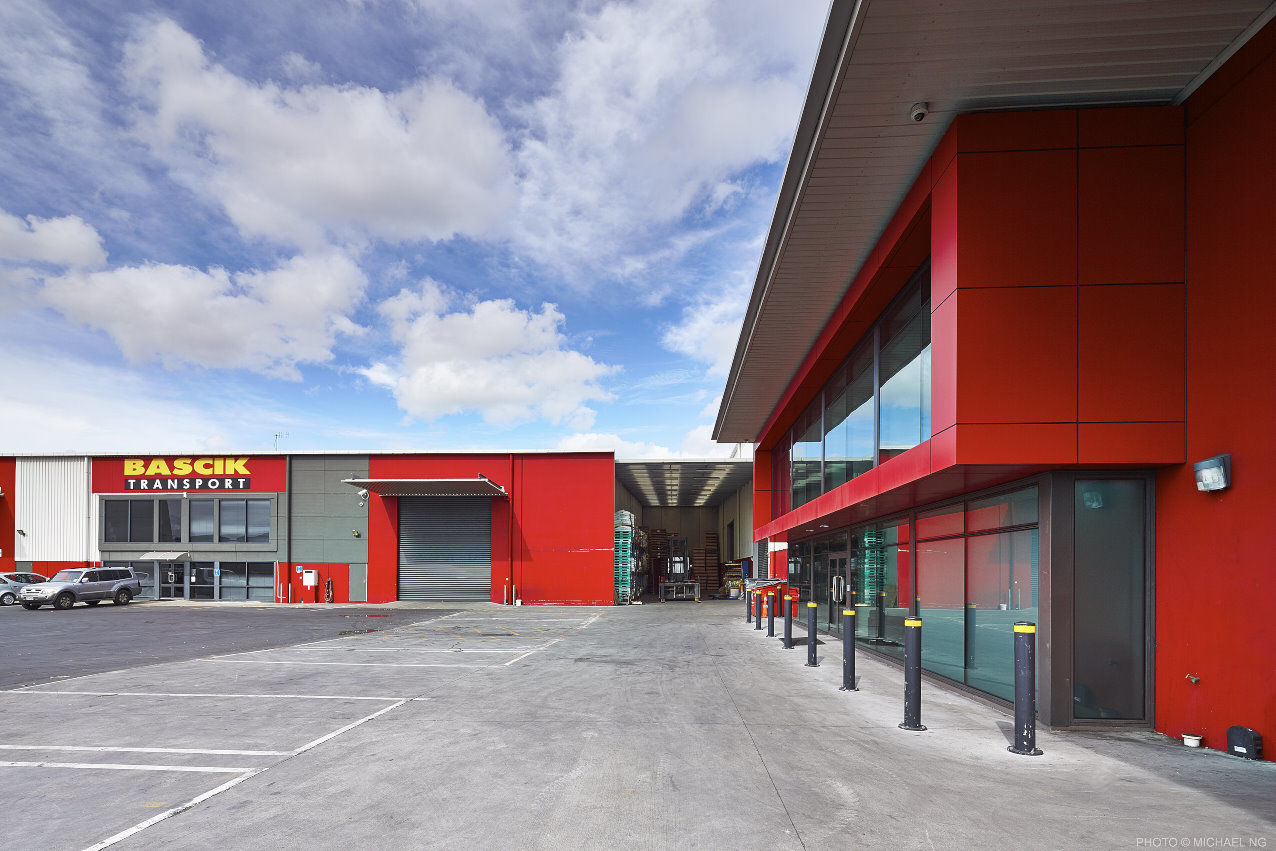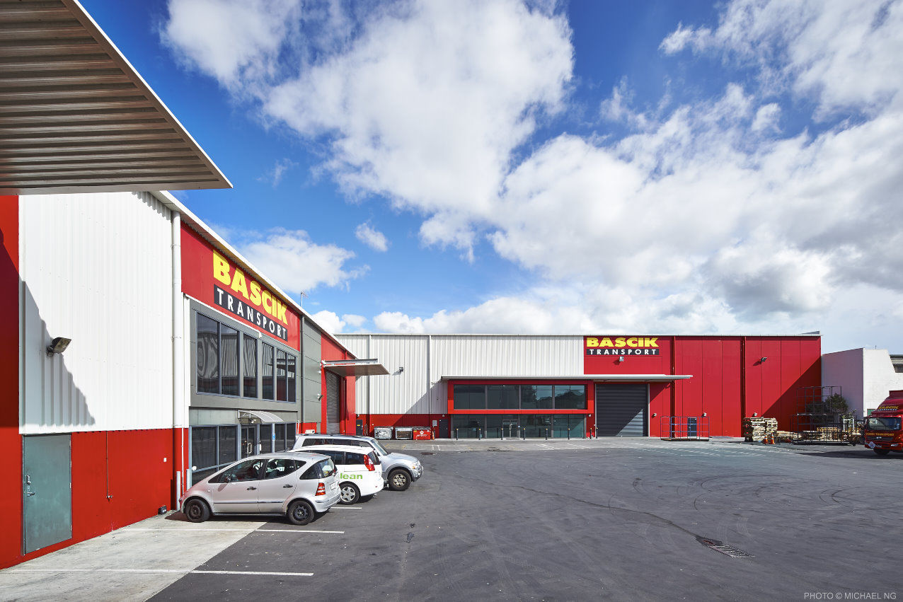Bascik Transport are a transport and logistics business from Christchurch. Wanting to expand their operation in Auckland, they asked for a new 2500m2 building that incorporated a large, covered, all-weather loading space which also serviced their existing building.