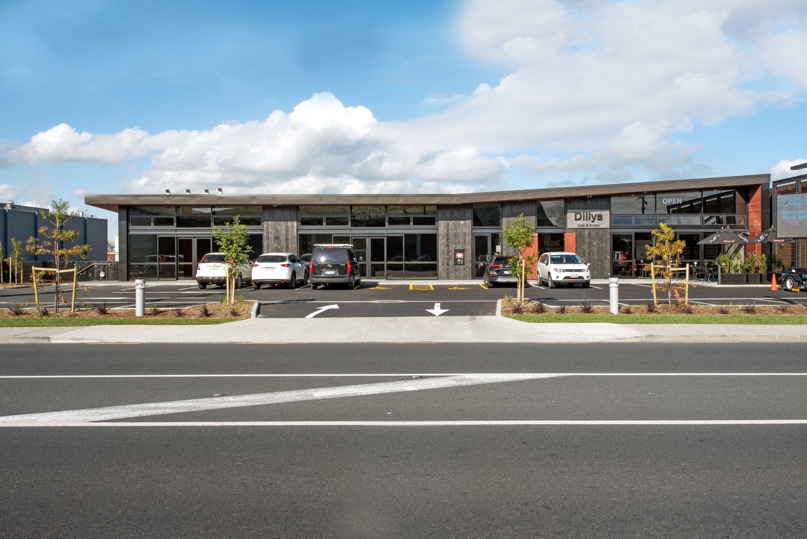 New retail spaces and a café on this busy arterial route in Penrose. Completed in 2019, this project complements Bascik Transports' offices, warehousing, container handling and all weather loading spaces. It is a welcome addition to this bustling neighbourhood.