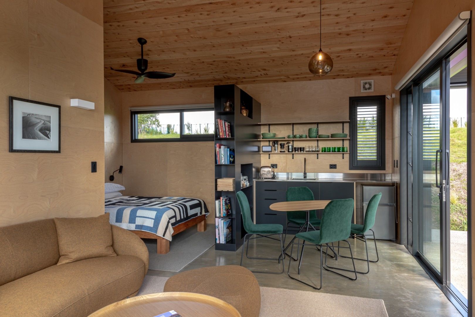 This off-grid barn / bach with 36m2 of living, loft plus workshop is nestled in Northland’s east coast. This project is a true embodiment of a commitment to sustainable, environmentally conscious living.