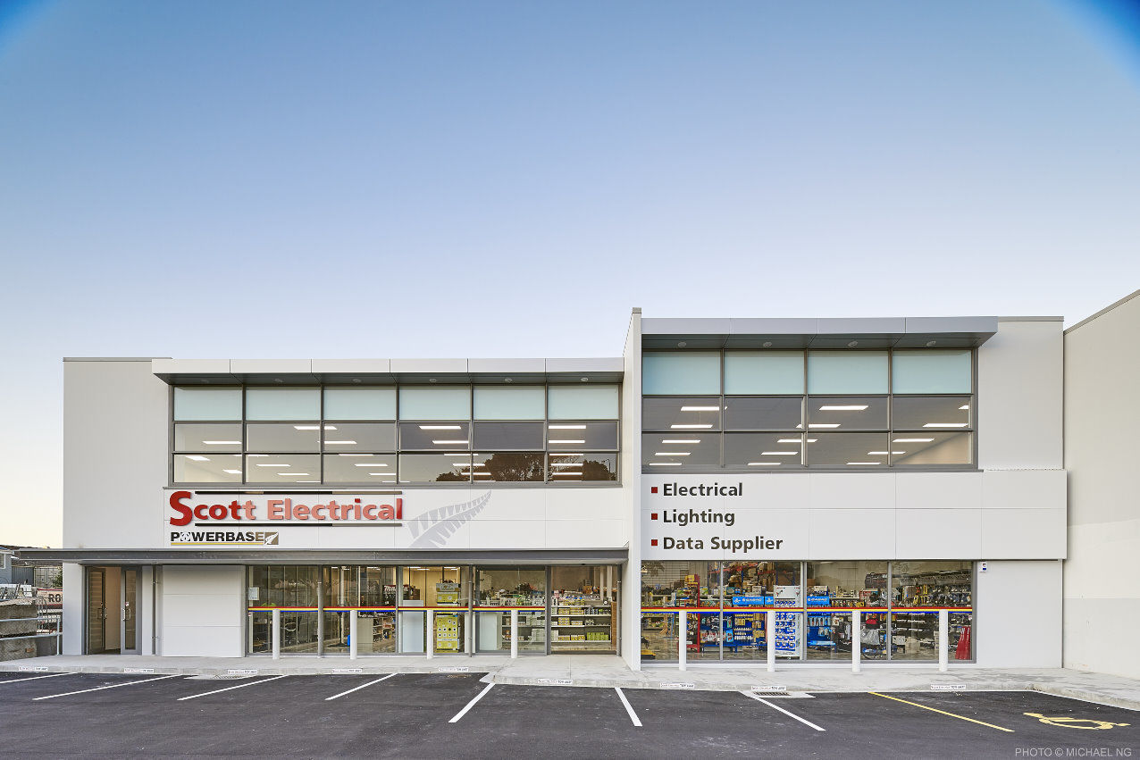 This building was designed for use as a warehouse and trade sales outlet, with the opportunity for separate tenancies on the upper floor, which are accessible from the street front. Its pure, rectangular form maximises the available space, with exposed concrete beams and wooden ceiling giving the lower floor its distinctive warehouse character. The simple form also gives the building an attractive appearance from the street.