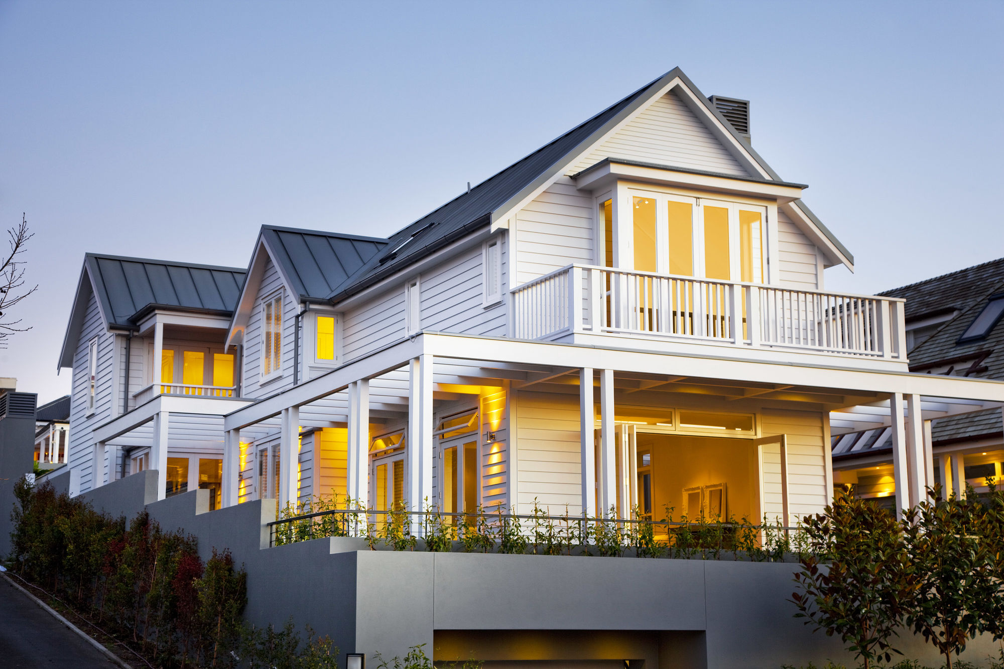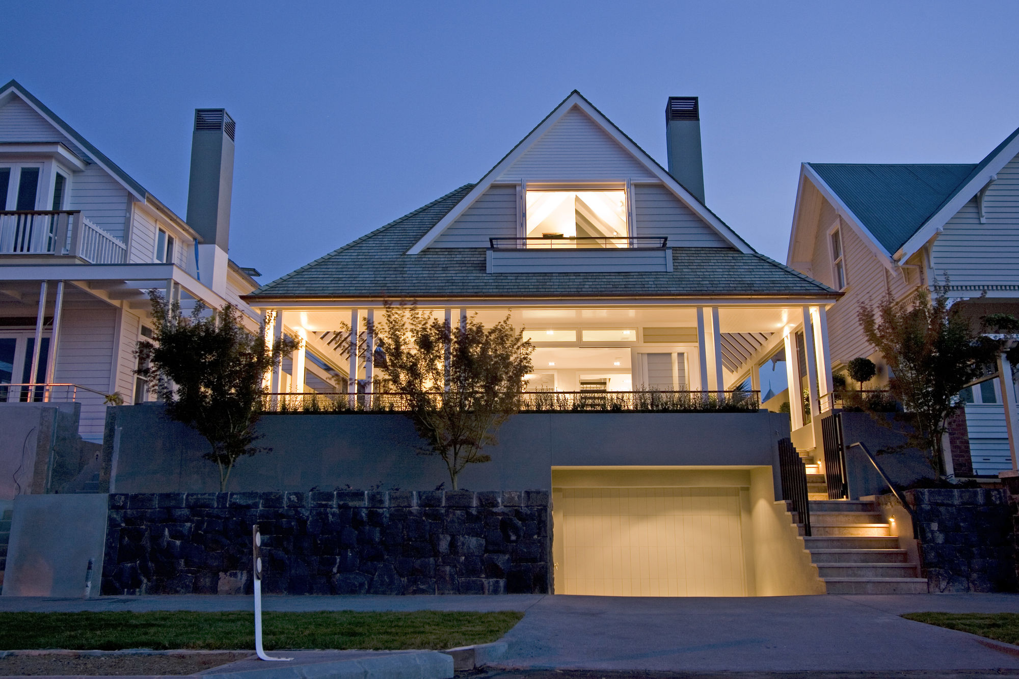 New house built in Auckland’s ‘Residential 1’ heritage zoning with upper level harbour views. This home is substantially larger than its initial street appearance. The owner (a professional builder) provided an expansive brief and an interesting approach to the project.