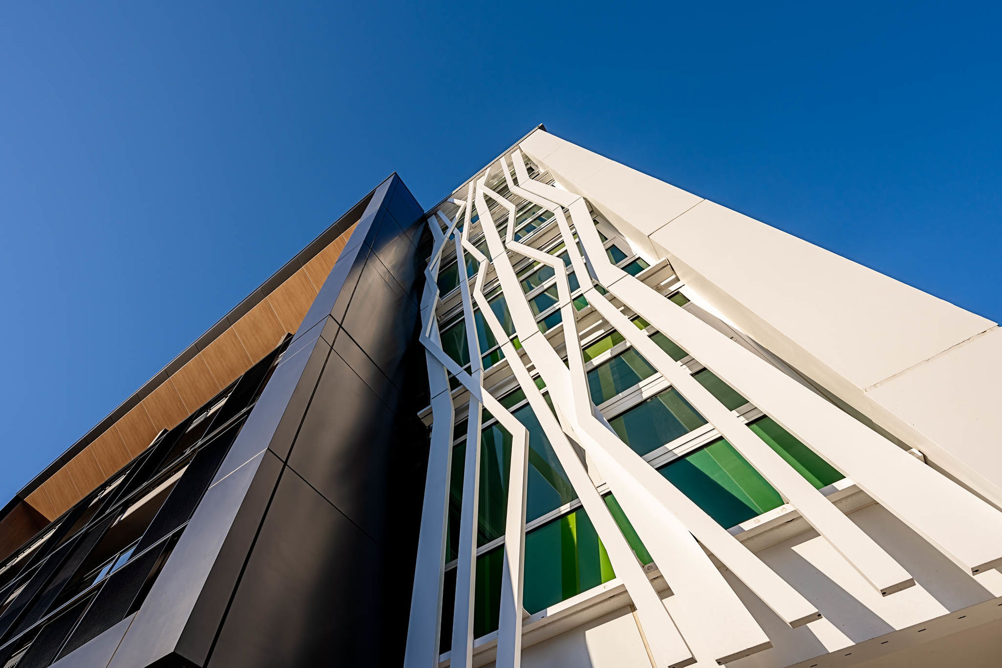 Materiality and colour soften this impressive building to a more residential scale while a vertical green wall blurs the boundaries of the site and enriches the surrounding area.